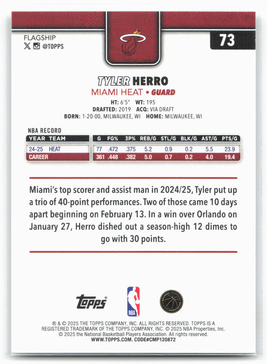 This is a nice example of a 2025-26 Topps #73 Tyler Herro Other important information about this card:In 2025 Tyler Herro played for the Miami Heat.Please check out our other...