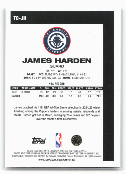 This is a nice example of a 2025-26 Topps #TC-JH James Harden 1980-81 Topps Chrome Basketball Other important information about this card:In 2025 James Harden played for the Los Angeles...