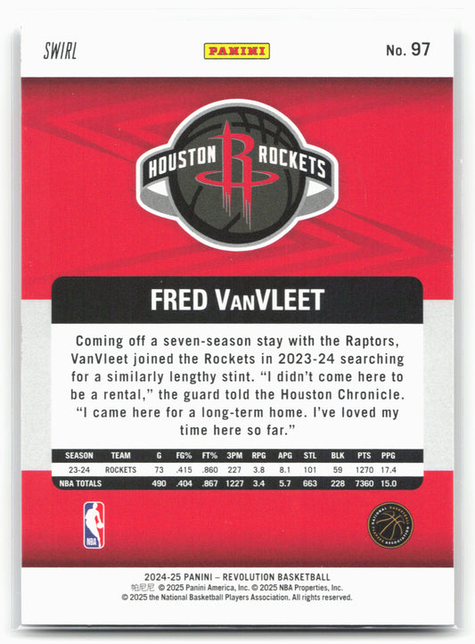 This is a nice example of a 2024-25 Panini Revolution #97 Fred VanVleet Red Swirl Other important information about this card:In 2024 Fred VanVleet played for the Houston Rockets.Please check...