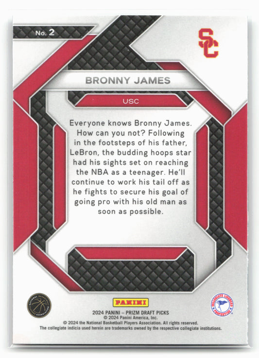 This is a nice example of a 2024 Panini Prizm Draft Picks #2 Bronny James Jr. New Recruits Other important information about this card:In 2024 Bronny James Jr. played for...