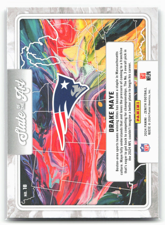 This is a nice example of a 2024 Panini Zenith #18 Drake Maye State of the Art Other important information about this card:In 2024 Drake Maye played for the New...