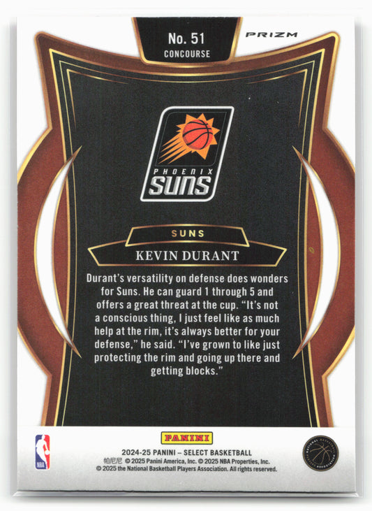 This is a nice example of a 2024-25 Panini Select #338 Kevin Durant Other important information about this card:In 2024 Kevin Durant played for the Phoenix Suns.Please check out our...
