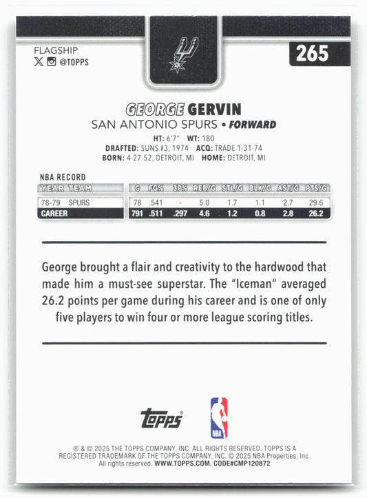 This is a nice example of a 2025-26 Topps #265 George Gervin Holo Foil Other important information about this card:25054In 2025 George Gervin played for the San Antonio Spurs.Please check...