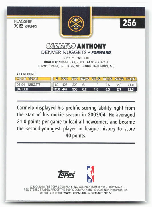 This is a nice example of a 2025-26 Topps #256 Carmelo Anthony Crackleboard Other important information about this card:25056In 2025 Carmelo Anthony played for the Denver Nuggets.Please check out our...