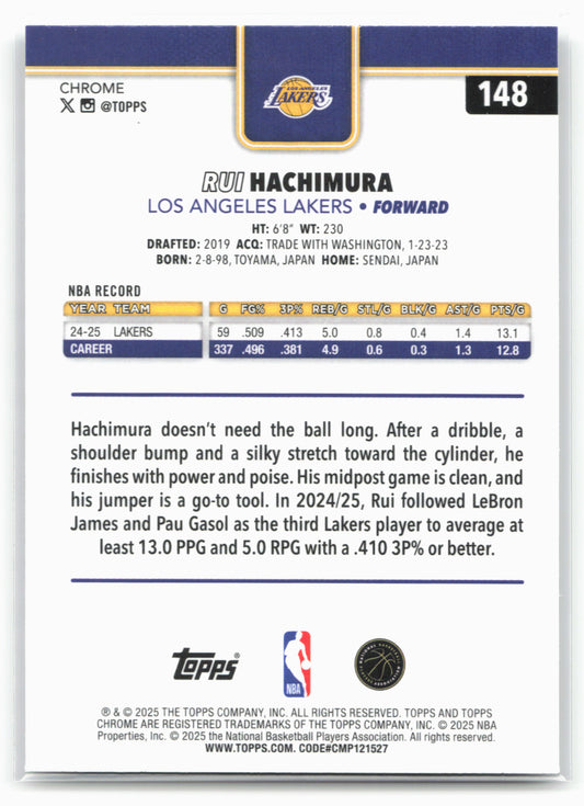 This is a nice example of a 2025-26 Topps Chrome #148 Rui Hachimura X-Fractors Other important information about this card:In 2025 Rui Hachimura played for the Los Angeles Lakers.Please check...