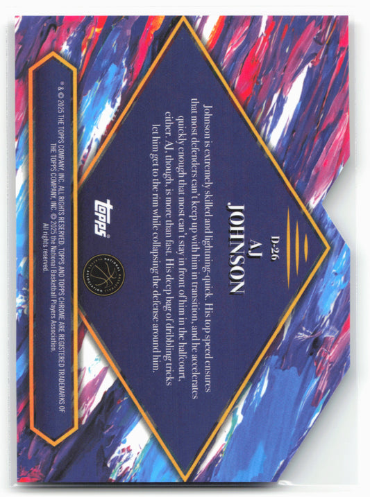 This is a nice example of a 2024-25 Finest #D-26 AJ Johnson Debut Other important information about this card:23152In 2024 AJ Johnson played for the Washington Wizards.Please check out our...
