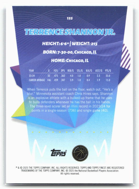This is a nice example of a 2024-25 Finest #155 Terrence Shannon Jr. Blue X-Factor Other important information about this card:SN,RCIn 2024 Terrence Shannon Jr. played for the Minnesota Timberwolves.Please...