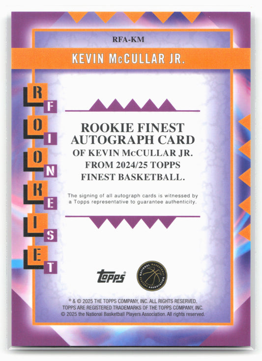 This is a nice example of a 2024-25 Finest #RFA-KM Kevin McCullar Jr. Rookie Finest Autographs Other important information about this card:AUIn 2024 Kevin McCullar Jr. played for the New...