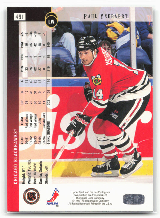 This is a nice example of a 1994-95 Upper Deck #491 Paul Ysebaert Other important information about this card:In 1994 Paul Ysebaert played for the Chicago Blackhawks.Please check out our...