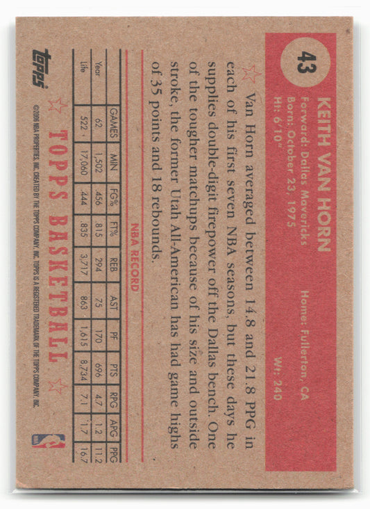 This is a nice example of a 2005-06 Topps 1952 Style #43 Keith Van Horn Other important information about this card:In 2005 Keith Van Horn played for the Dallas Mavericks.Please...