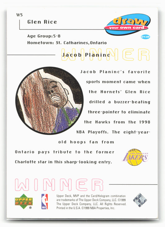 This is a nice example of a 1999-00 Upper Deck MVP #W5 Glen Rice Draw Your Own Trading Card Winner Other important information about this card:In 1999 Glen Rice played...