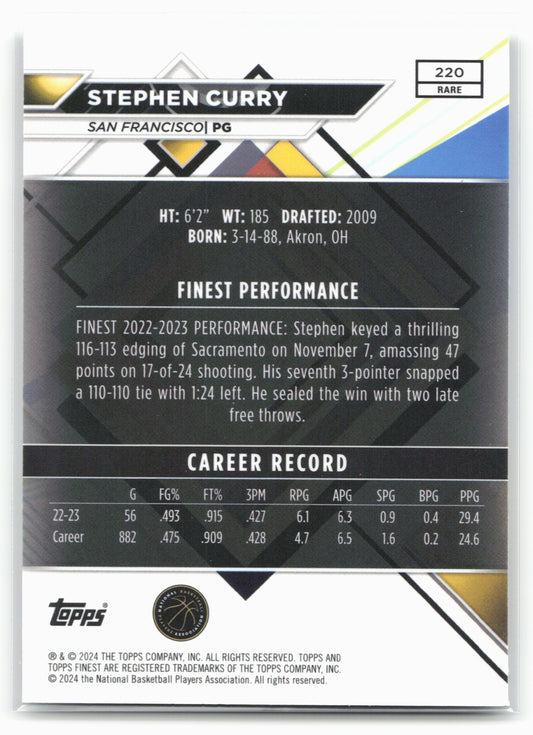 This is a nice example of a 2023-24 Finest #220 Stephen Curry Other important information about this card:24738In 2023 Stephen Curry played for the Golden State Warriors.Please check out our...
