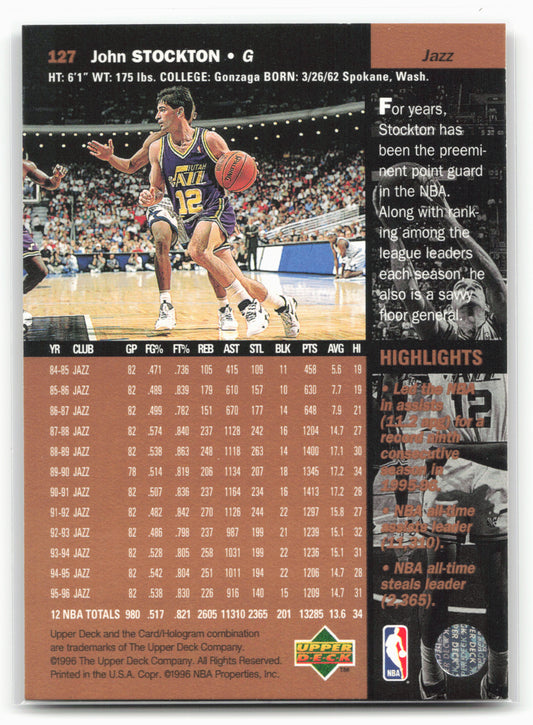 This is a nice example of a 1996-97 Upper Deck #127 John Stockton Other important information about this card:24740In 1996 John Stockton played for the Utah Jazz.Please check out our...