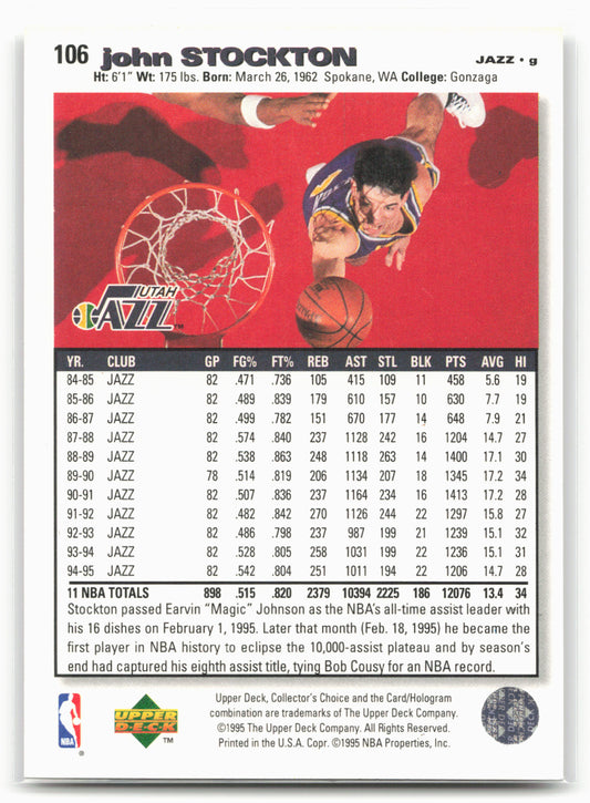 This is a nice example of a 1995-96 Collector's Choice #106 John Stockton Other important information about this card:In 1995 John Stockton played for the Utah Jazz.Please check out our...