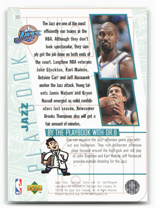 This is a nice example of a 1996-97 Collector's Choice #393 Jazz Playbook Other important information about this card:24749In 1996 Jazz Playbook played for the Utah Jazz.Please check out our...