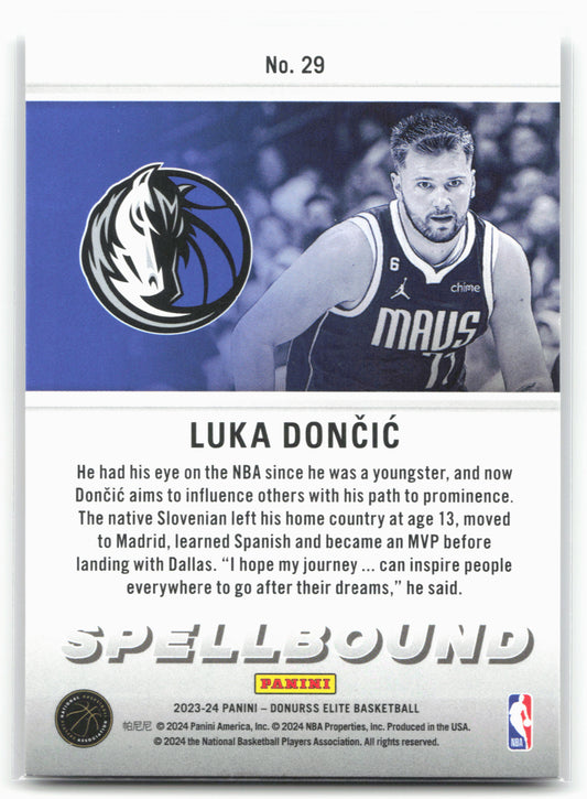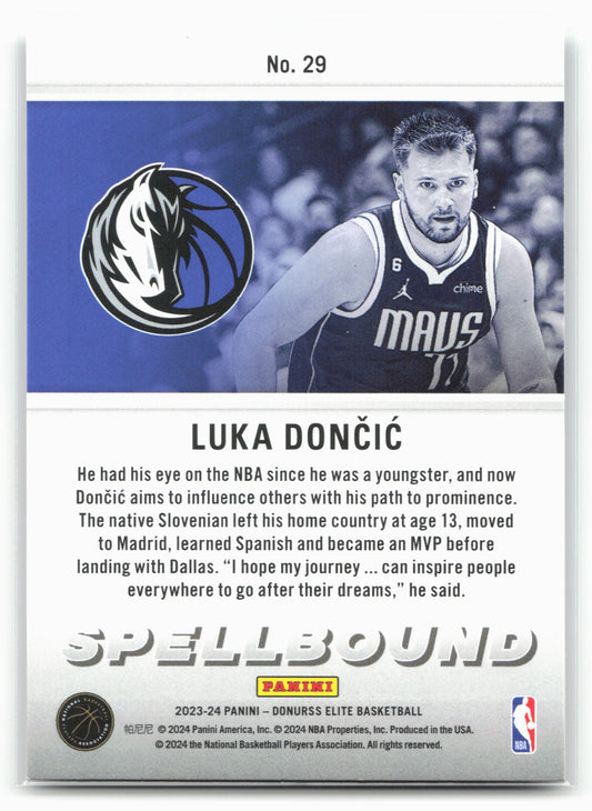 This is a nice example of a 2023-24 Donruss Elite #29 Luka Doncic Spellbound Other important information about this card:24751In 2023 Luka Doncic played for the Dallas Mavericks.Please check out...