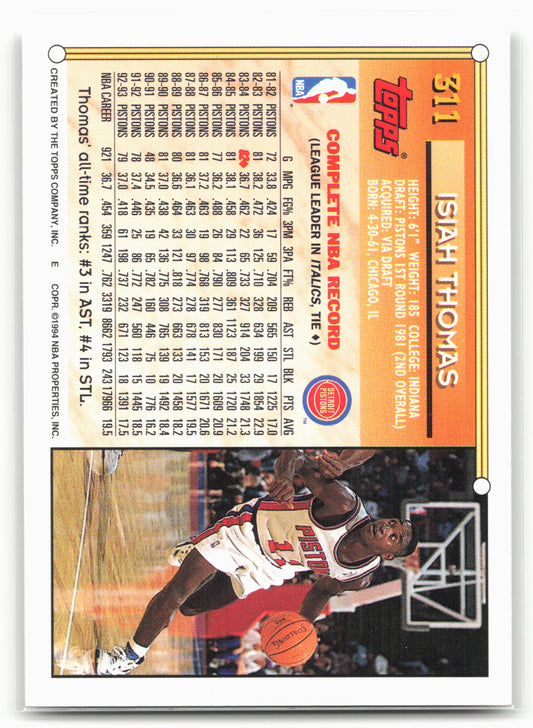 This is a nice example of a 1993-94 Topps #311 Isiah Thomas Gold Other important information about this card:24755In 1993 Isiah Thomas played for the Detroit Pistons.Please check out our...