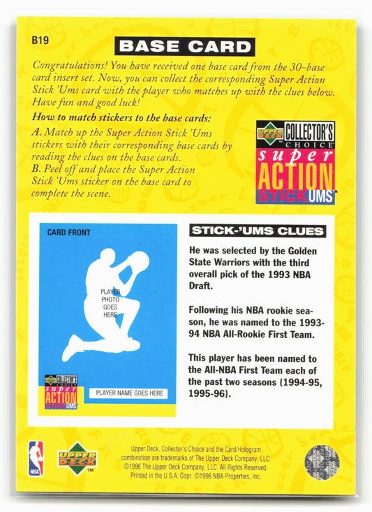This is a nice example of a 1996-97 Collector's Choice #B19 Anfernee Hardaway Super Action Stick 'Ums (Series Two Bases) Other important information about this card:24756In 1996 Anfernee Hardaway played...