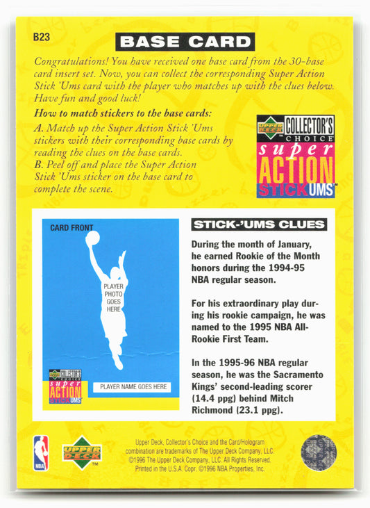This is a nice example of a 1996-97 Collector's Choice #B23 Brian Grant Super Action Stick 'Ums (Series Two Bases) Other important information about this card:24757In 1996 Brian Grant played...