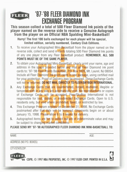 This is a nice example of a 1997-98 Fleer #NNO Antonio McDyess Diamond Ink 1 Point Other important information about this card:In 1997 Antonio McDyess played for the NBA.Please check...