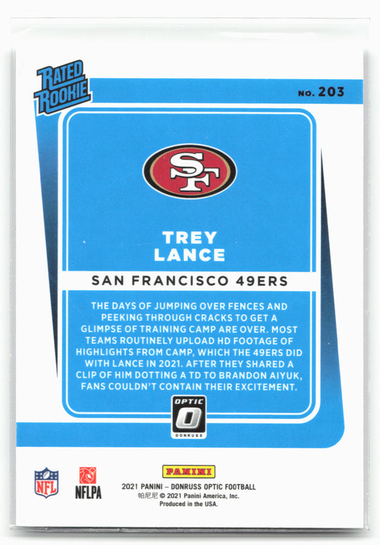 This is a nice example of a 2021 Donruss Optic #203 Trey Lance Other important information about this card:RCIn 2021 Trey Lance played for the San Francisco 49ers.Please check out...