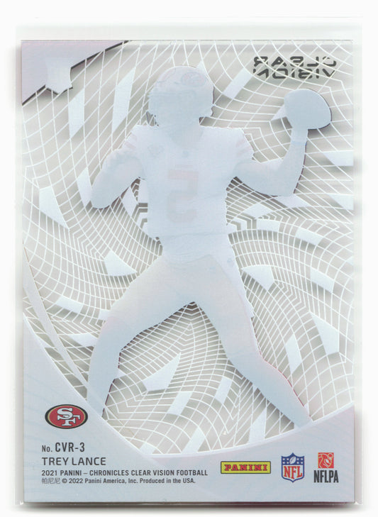 This is a nice example of a 2021 Panini Chronicles #CVR-3 Trey Lance Clear Vision Rookies Other important information about this card:In 2021 Trey Lance played for the San Francisco...
