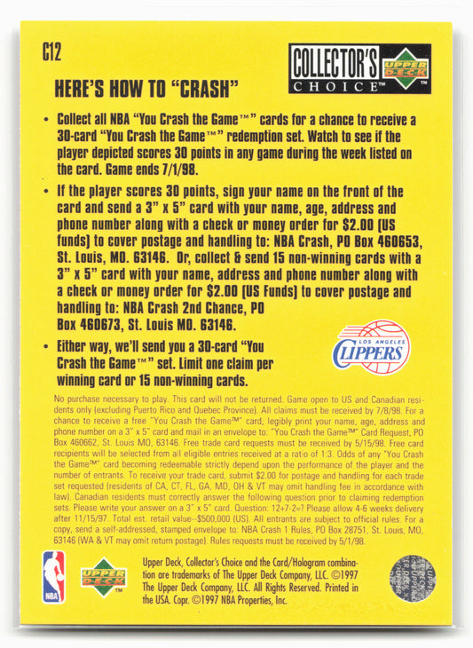 This is a nice example of a 1997-98 Collector's Choice European #C12a Rodney Rogers You Crash the Game Other important information about this card:November 24-30 1997;In 1997 Rodney Rogers played...