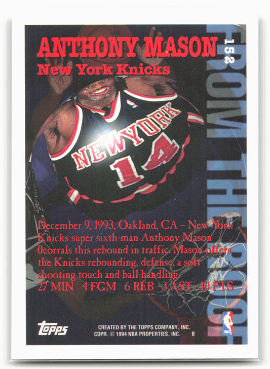 This is a nice example of a 1994-95 Topps #152 Anthony Mason Other important information about this card:In 1994 Anthony Mason played for the New York Knicks.Please check out our...