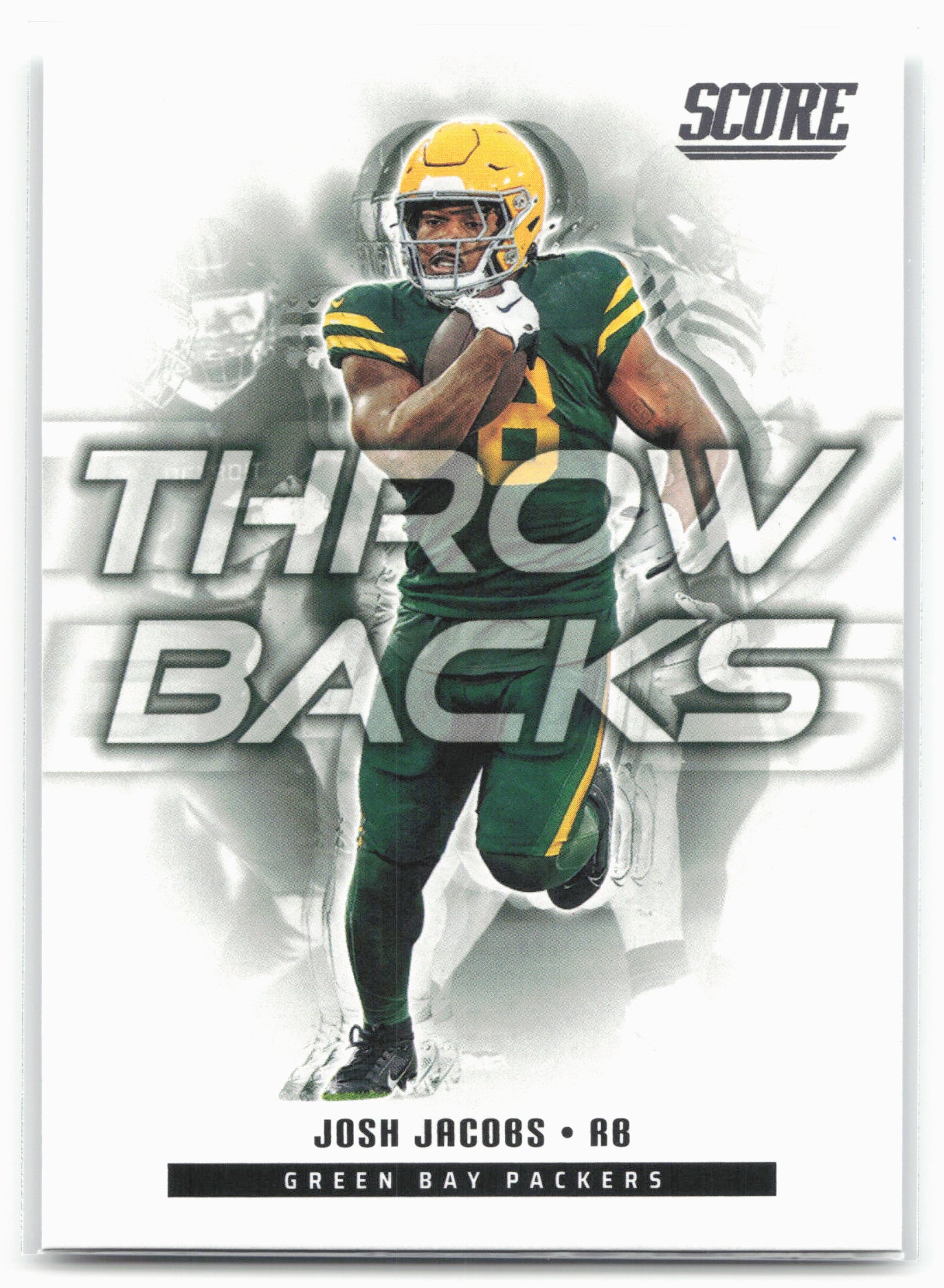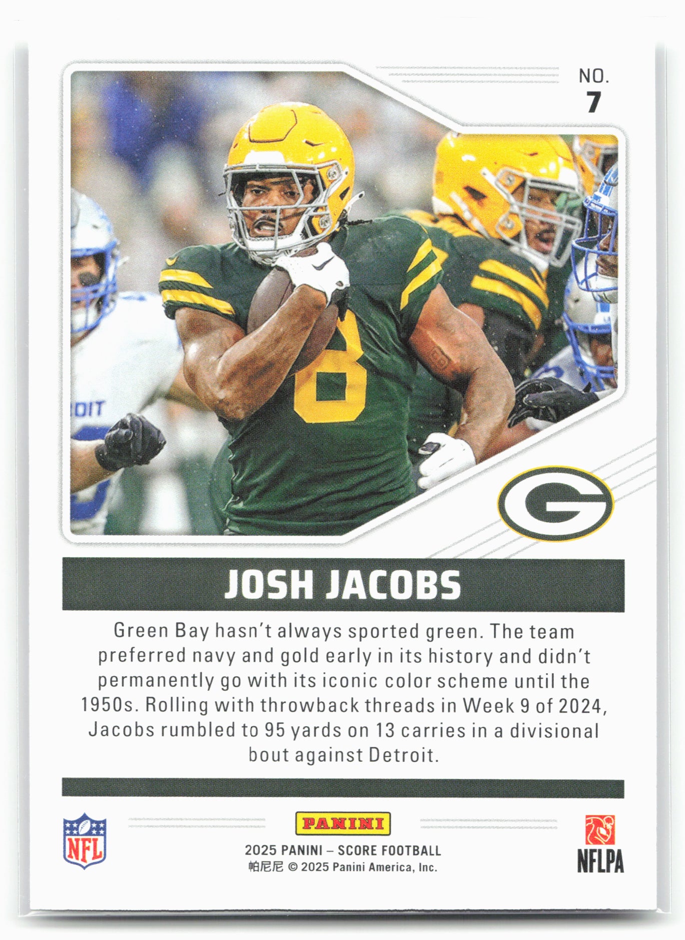 This is a nice example of a 2025 Score #7 Josh Jacobs Throwbacks
